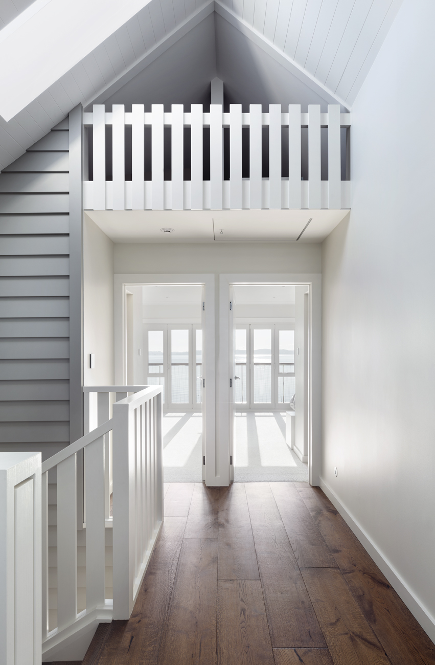 As the midday sun warms the interior, the heated air naturally rises through these chimneys. When the skylights open, this warm air is exhausted, drawing a fresh, cool coastal breeze through the lower levels. This constant, silent cycle of ventilation keeps the home at a comfortable, stable temperature, even on the peak days of a New Zealand summer.